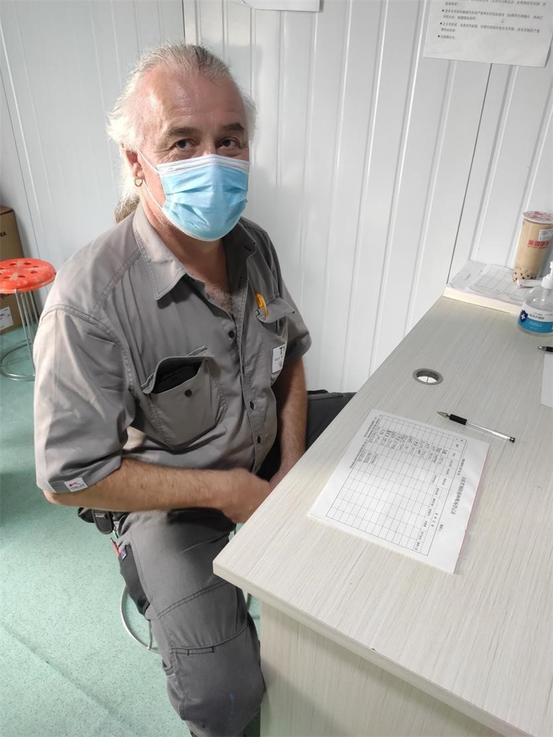 Olaf Mischur(音譯:奧樂夫)58歲來自德國,現(xiàn)服務(wù)于山鋼股份萊蕪分公司新舊動能轉(zhuǎn)換1號 3800m3高爐現(xiàn)場,主要負責(zé)指導(dǎo)TMT開鐵口機設(shè)備的安裝和調(diào)試工作。