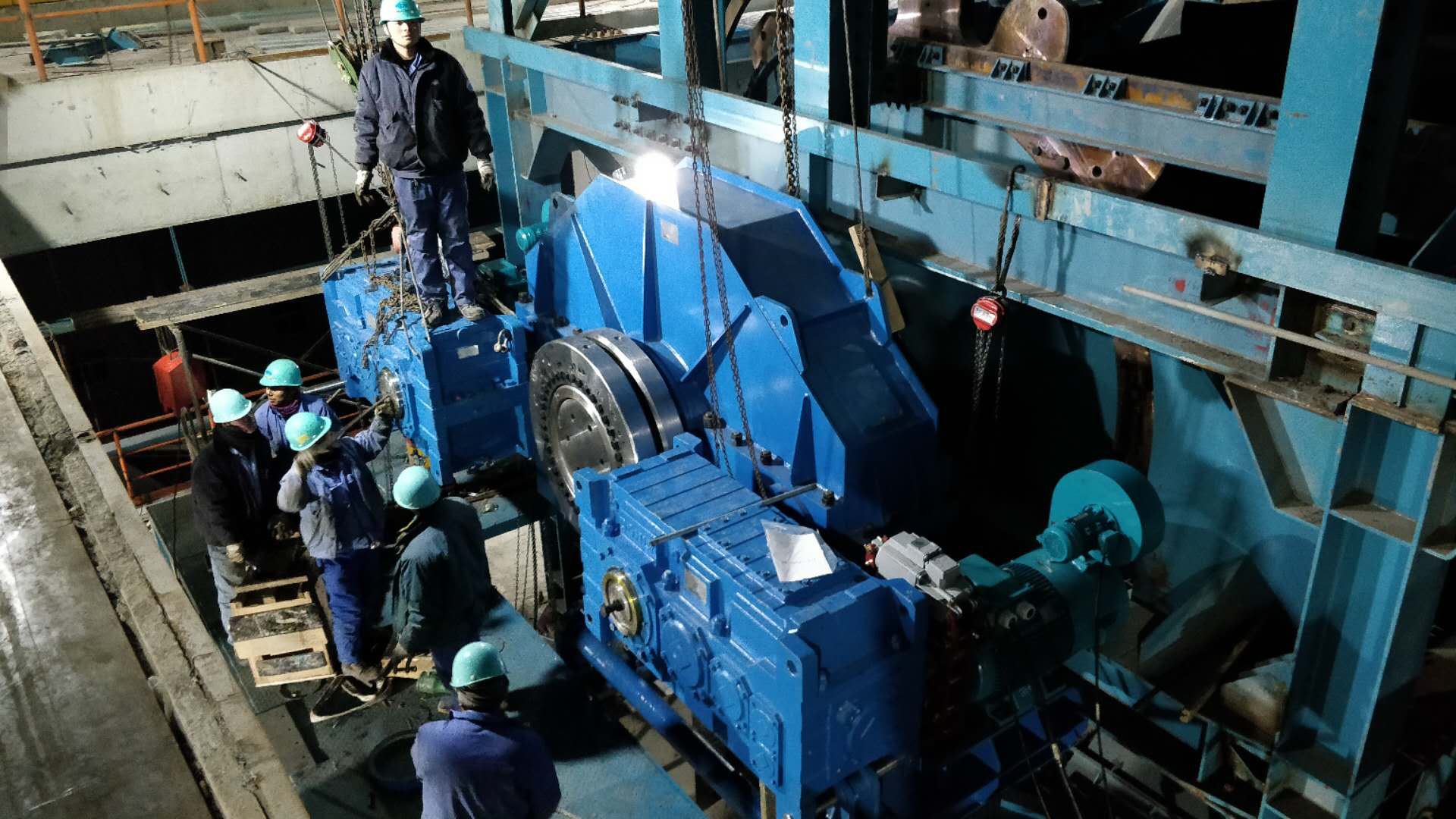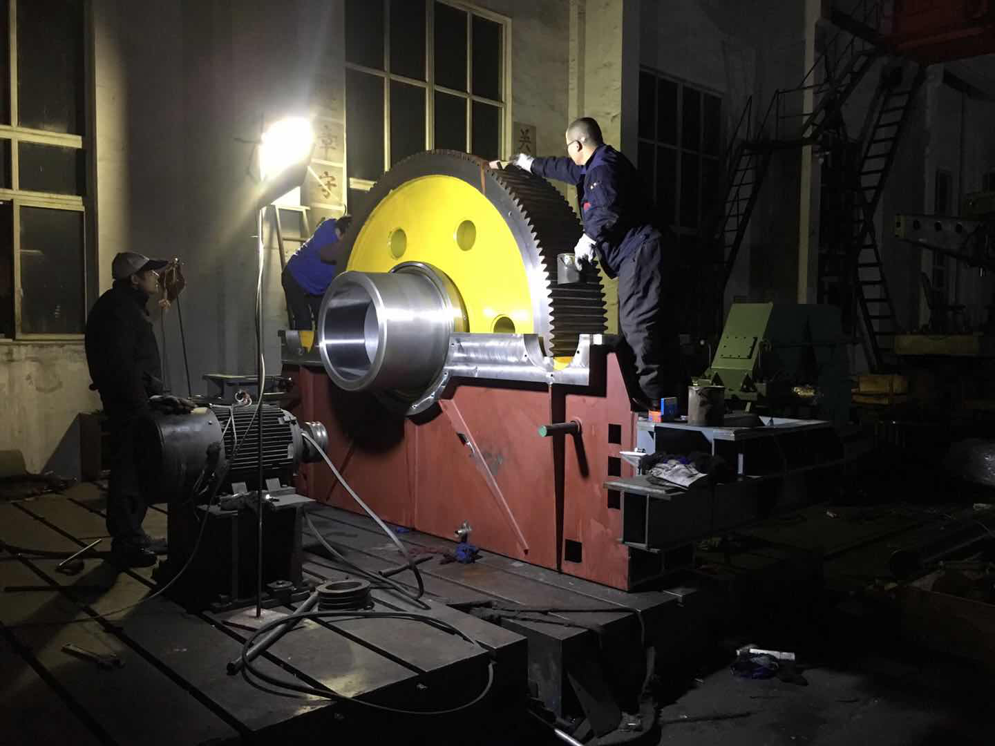 設(shè)備到場后,項目部根據(jù)之前制定的施工方案,連夜組織安裝隊伍卸車、安裝,安裝過程中,由于柔傳設(shè)備與燒結(jié)機頭輪設(shè)備為兩廠家制造,制造精度存在偏差,安裝前經(jīng)過反復(fù)測量還是發(fā)生了一次減速機在臨近完成穿軸工序時無法正常進行的狀況,此時已是第二天凌晨4點。項目部現(xiàn)場人員當(dāng)即決定退出一次減速機進行處理后重新穿軸,待設(shè)備處理好第二次穿軸完成時已是第二天上午9點16分。期間,山冶設(shè)計日照燒結(jié)項目部、監(jiān)理人員24小時連夜督戰(zhàn),一刻都沒有休息,二十冶施工人員更是一鼓作氣完成了扭力桿、傳動電機、二次減速機的安裝,甚至吃飯都在現(xiàn)場臨時解決。電氣安裝人員與調(diào)試人員隨時待命,在設(shè)備安裝的同時穿插完成了電機的接線與調(diào)試工作。到下午6點18分,連續(xù)奮戰(zhàn)28小時后完成了整個柔傳設(shè)備的安裝調(diào)試工作,提前完成了預(yù)先制定的春節(jié)前施工任務(wù)。而在精品基地一期一步時,此安裝任務(wù)用了整整七天!這次僅用了28小時!