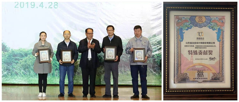 2019年4月28日應(yīng)天津榮程聯(lián)合鋼鐵集團(tuán)有限公司邀請(qǐng),我公司副院長吳兆軍出席了天津榮程建廠18周年慶祝活動(dòng)及頒獎(jiǎng)典禮,并榮獲了由榮程集團(tuán)董事局主席張榮華女士親筆簽名、榮程集團(tuán)張?jiān)鍪隹偙O(jiān)親自頒發(fā)的“2019年度榮鋼升級(jí)改造項(xiàng)目特殊貢獻(xiàn)獎(jiǎng)”,以表彰我公司為榮程戰(zhàn)略發(fā)展做出的突出貢獻(xiàn)。