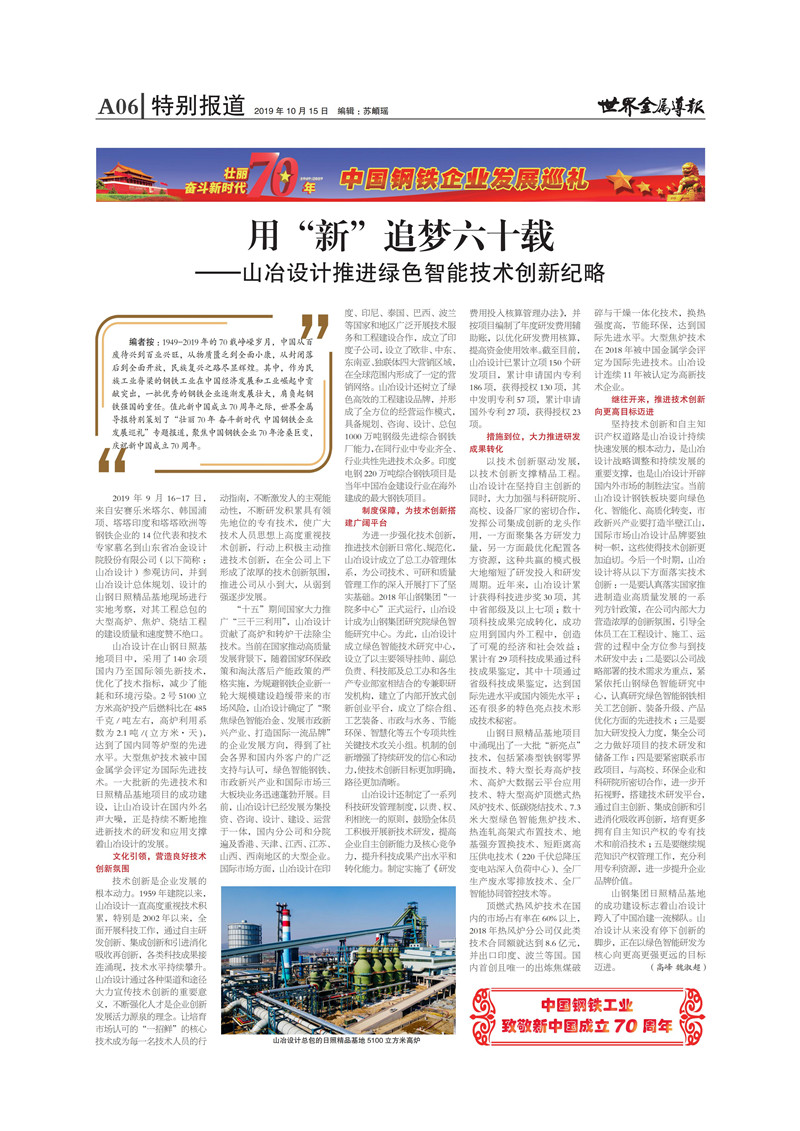 用“新”追夢六十載——山東省冶金設計院股份有限公司推進綠色智能技術創新戰略