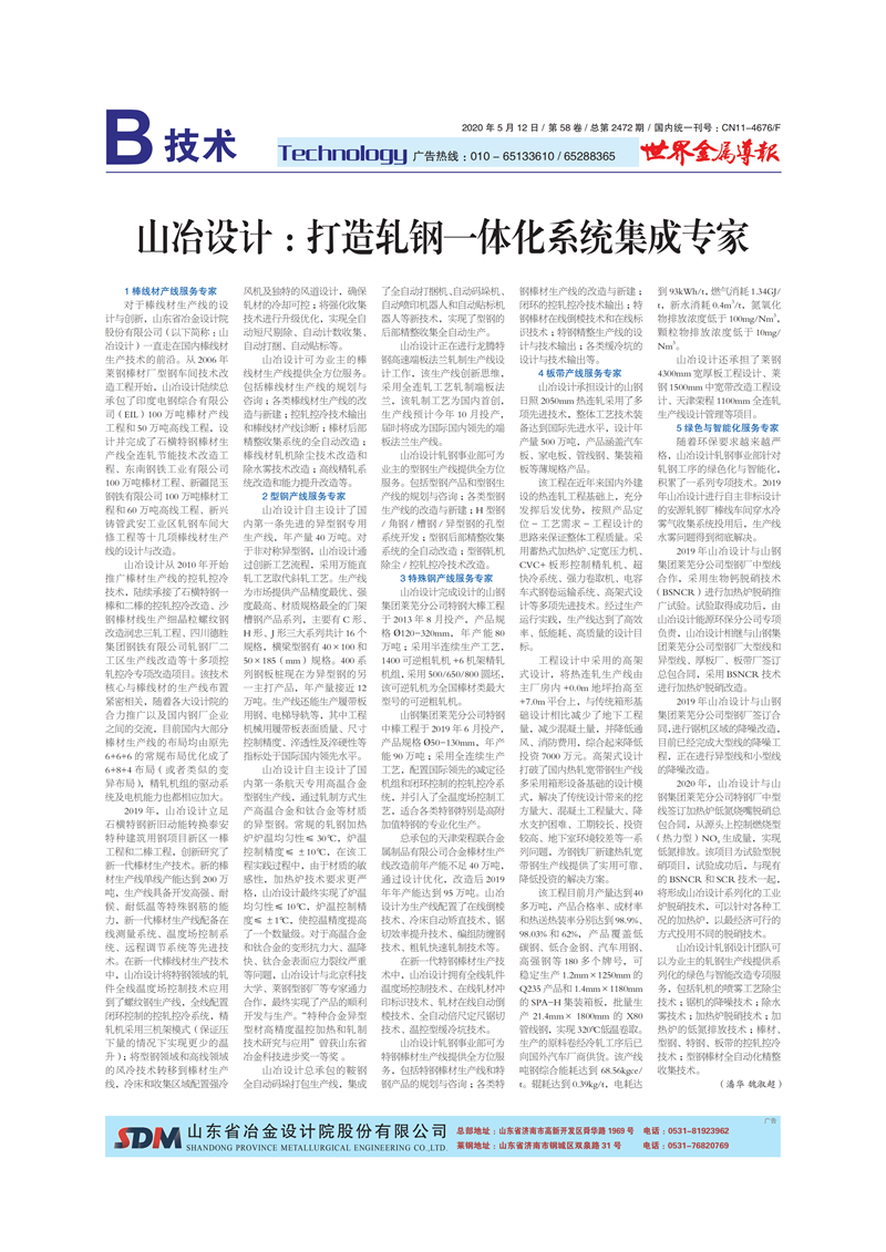 山冶設(shè)計(jì):打造軋鋼一體化系統(tǒng)集成專家